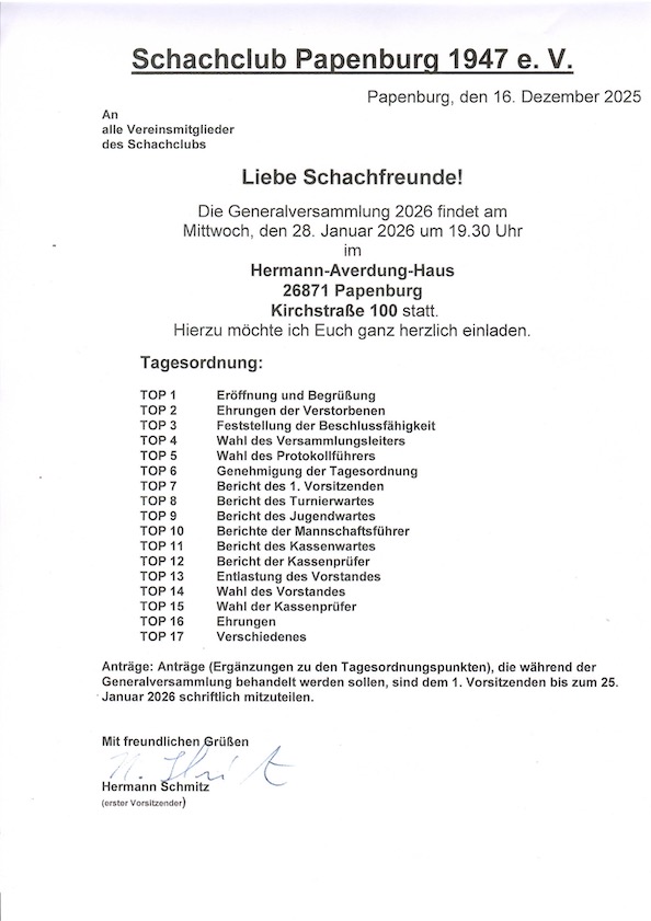 DWZ-Auswetung eingereicht. Auch die Vorbereitung des heutigen